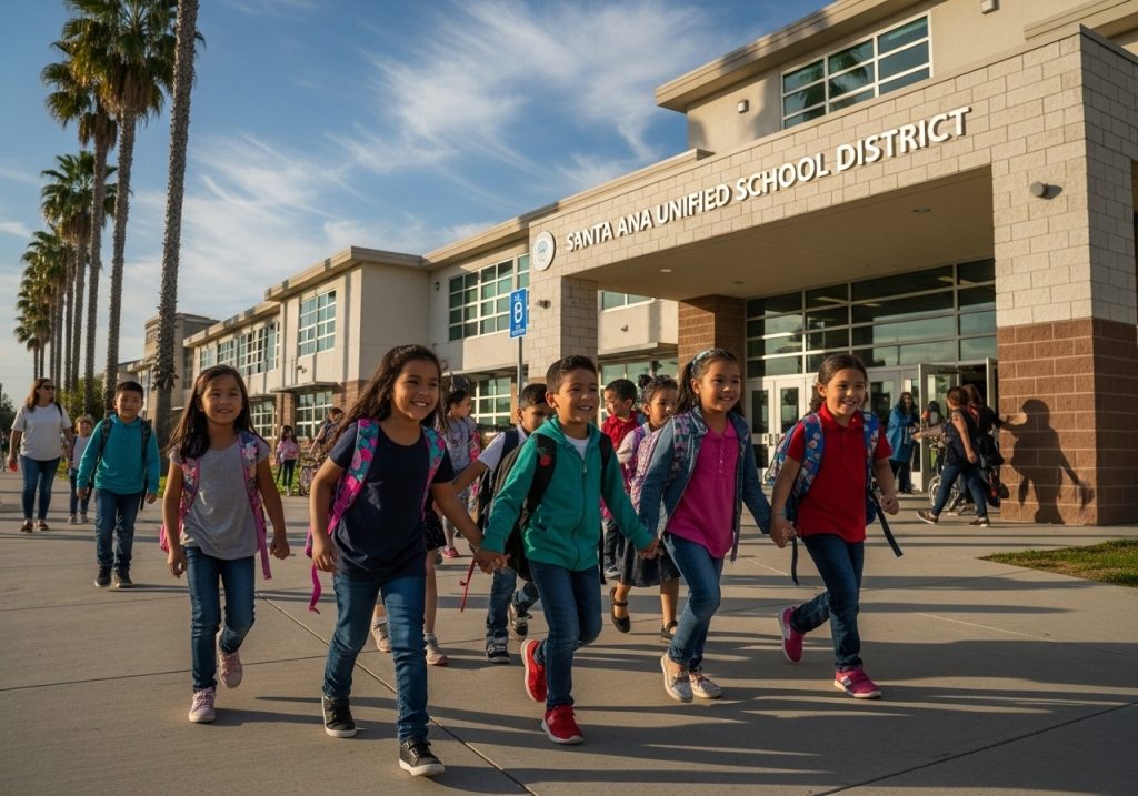 Santa Ana places a strong emphasis on education, with its motto “Education First” reflecting a commitment to academic excellence and access. The city is served primarily by the Santa Ana Unified School District (SAUSD), one of California’s largest districts, serving over 44,000 students across K–12, including traditional, fundamental, charter, and alternative schools. It hosts a diverse student body and offers specialized programs such as International Baccalaureate, early college placements, arts-focused curriculums, and career-technical education. Higher education is represented by Santa Ana College (community college) and nearby private vocational and academic institutions. The city also has robust library services through the Santa Ana Public Library system and access to Orange County Public Libraries, supporting lifelong learning and community enrichment.